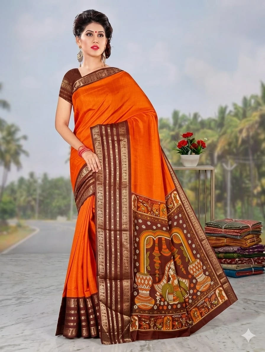 Elegant Orange Color – A vibrant heritage orange shade that enhances traditional beauty.