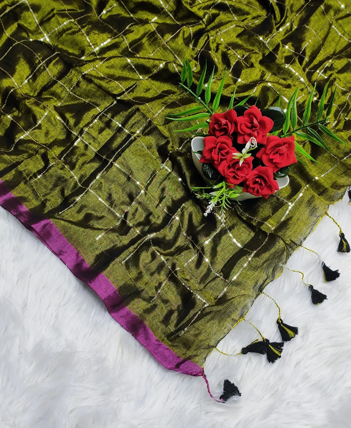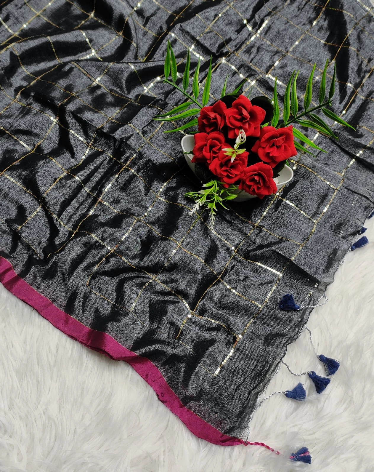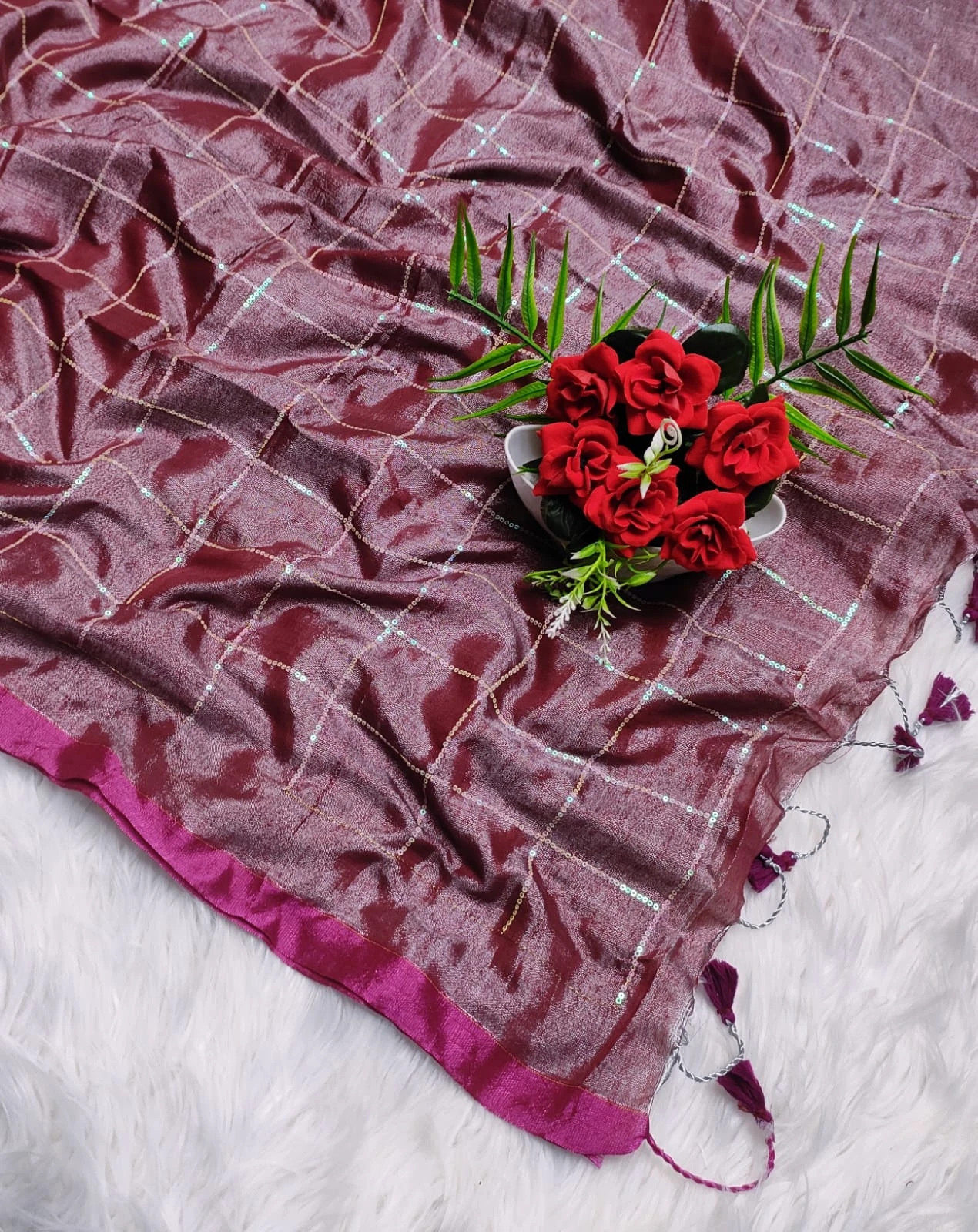 Elegant Sequin Checks Design – Beautiful sequin grid pattern adds sparkle and modern style.