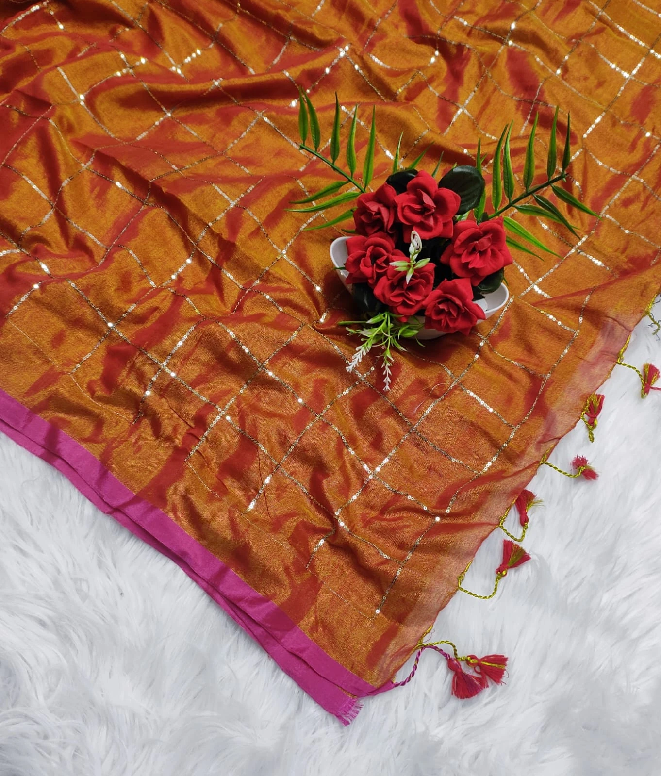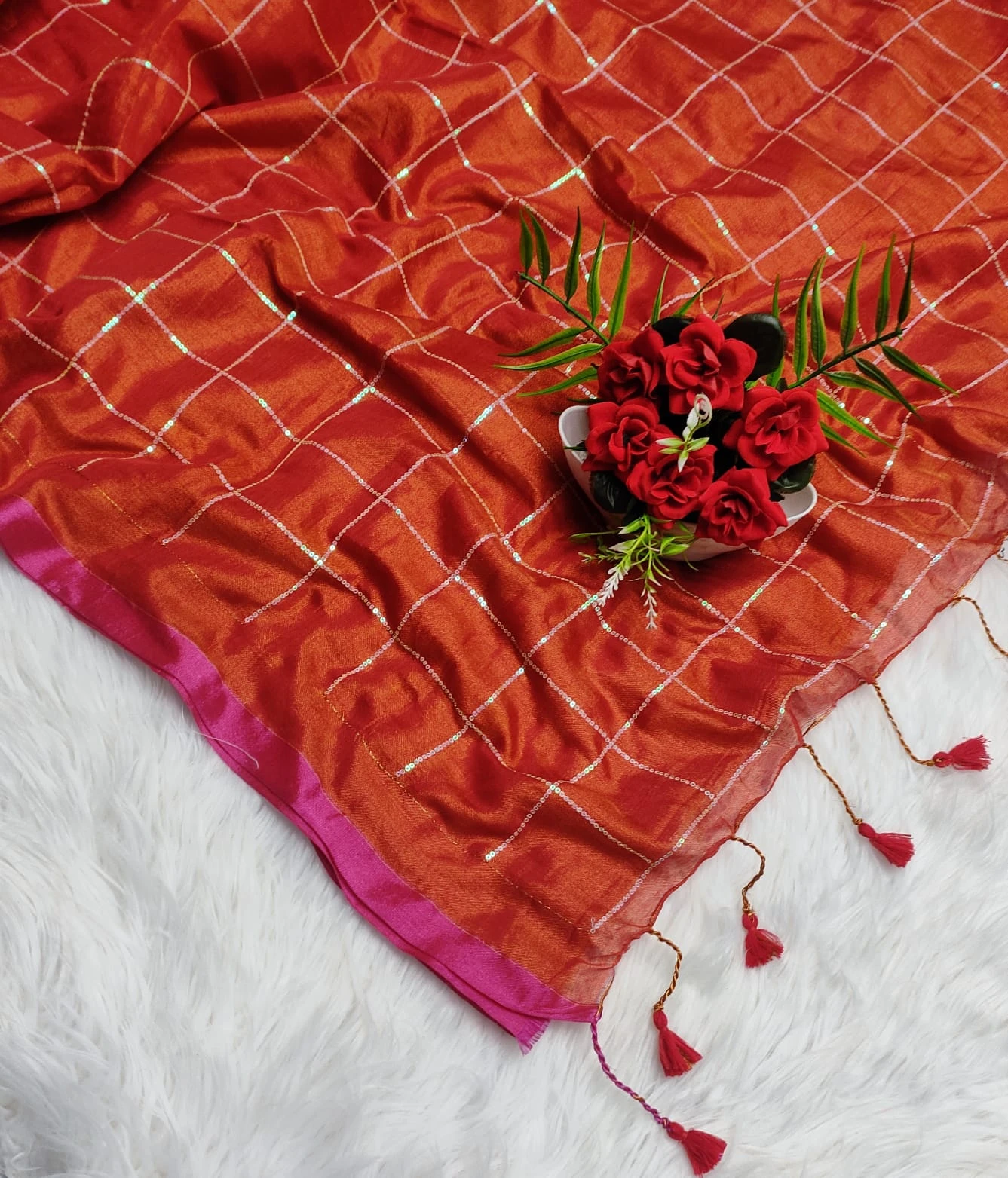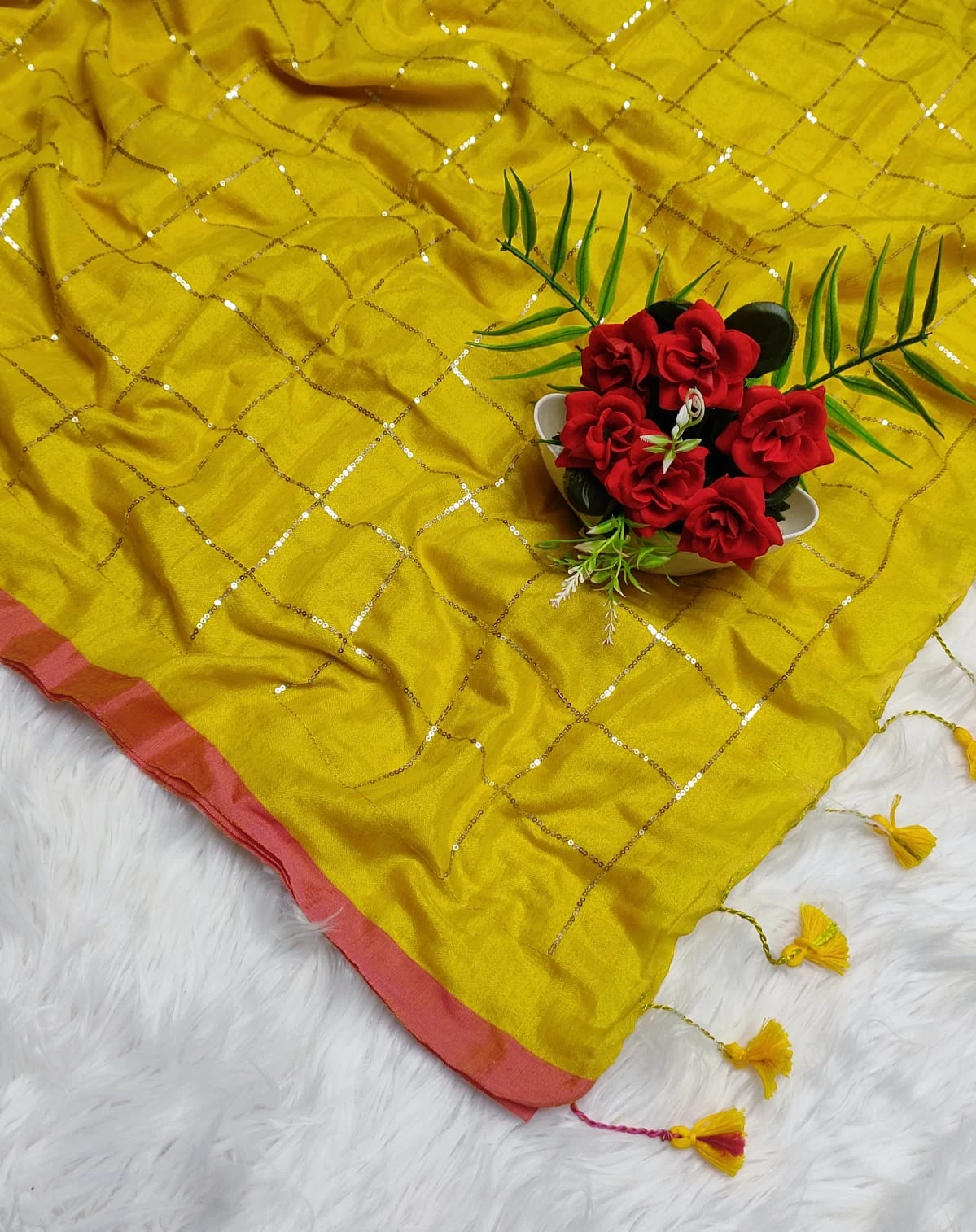 Elegant Sequin Checks Design – Beautiful sequin grid pattern adds sparkle and modern style.